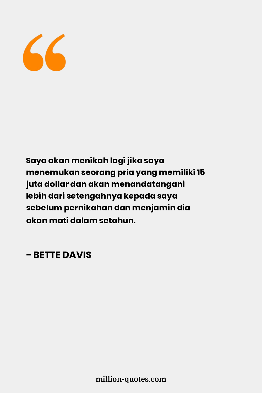 Saya akan menikah lagi jika saya menemukan seorang pria yang memiliki 15 juta dollar dan akan menandatangani lebih dari setengahnya kepada saya sebelum pernikahan dan menjamin dia akan mati dalam setahun.
