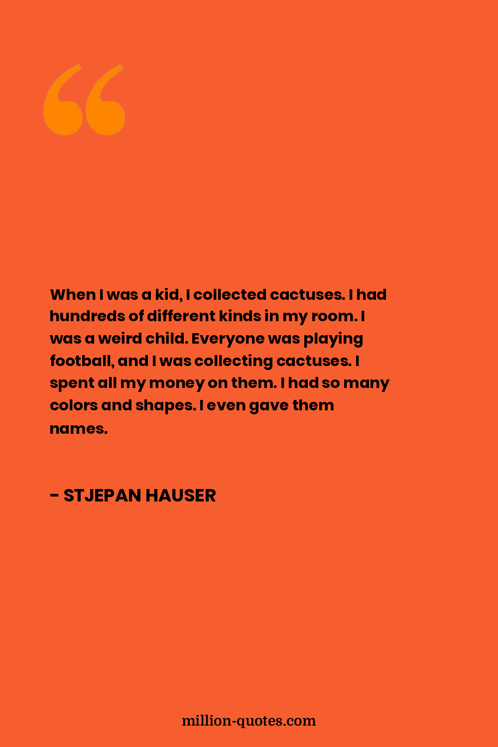 When I was a kid, I collected cactuses. I had hundreds of different kinds in my room. I was a weird child. Everyone was playing football, and I was collecting cactuses. I spent all my money on them. I had so many colors and shapes. I even gave them names.