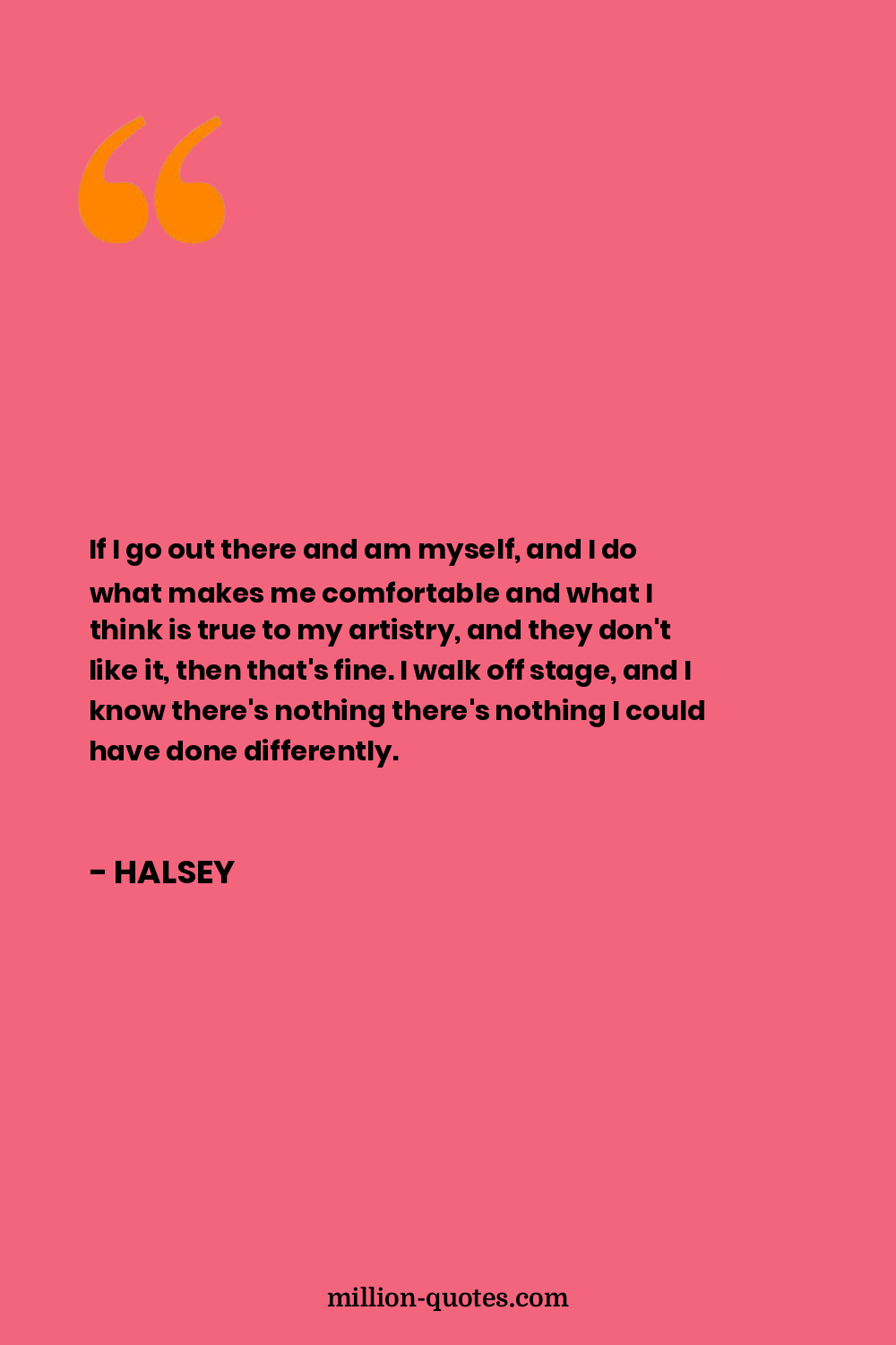 If I go out there and am myself, and I do what makes me comfortable and what I think is true to my artistry, and they don't like it, then that's fine. I walk off stage, and I know there's nothing there's nothing I could have done differently.