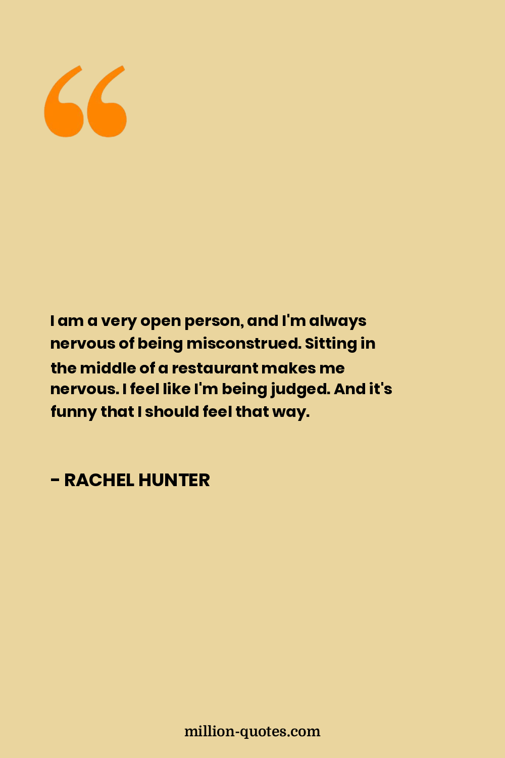 I am a very open person, and I'm always nervous of being misconstrued. Sitting in the middle of a restaurant makes me nervous. I feel like I'm being judged. And it's funny that I should feel that way.