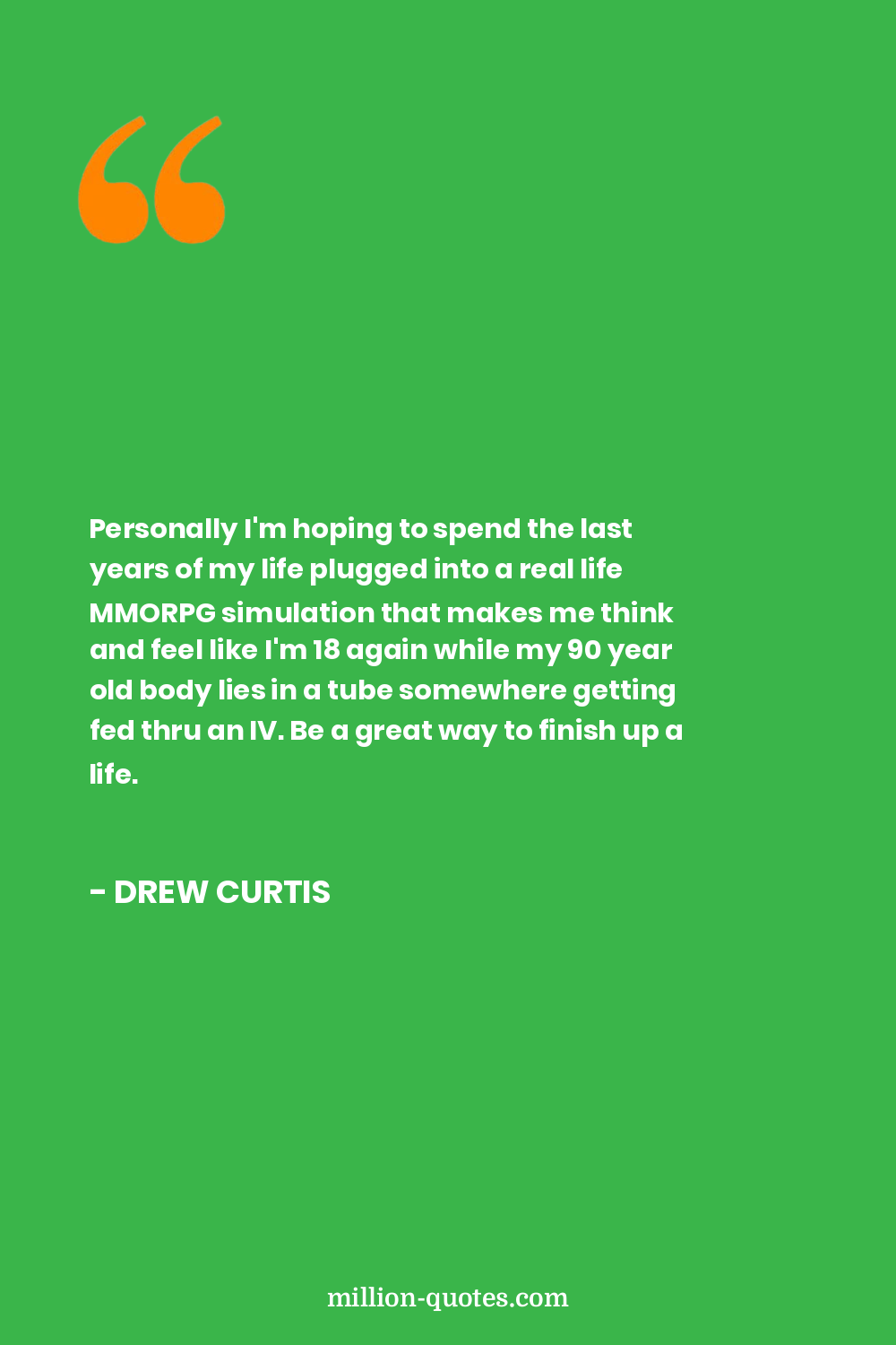 Personally I'm hoping to spend the last years of my life plugged into a real life MMORPG simulation that makes me think and feel like I'm 18 again while my 90 year old body lies in a tube somewhere getting fed thru an IV. Be a great way to finish up a life.