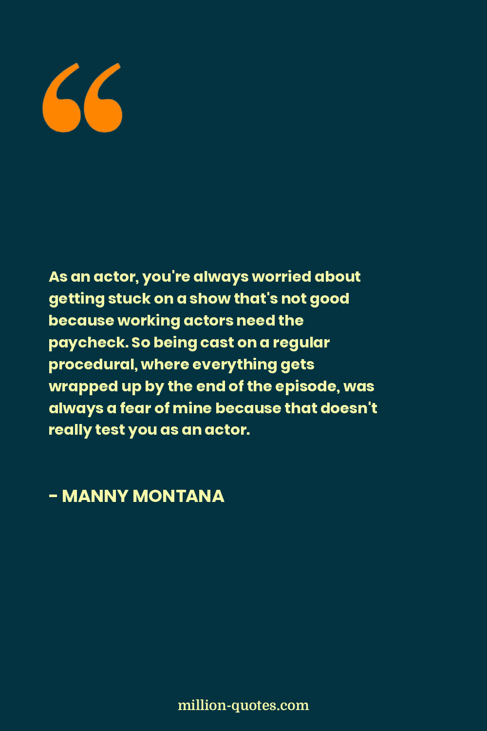 As an actor, you're always worried about getting stuck on a show that's not good because working actors need the paycheck. So being cast on a regular procedural, where everything gets wrapped up by the end of the episode, was always a fear of mine because that doesn't really test you as an actor.