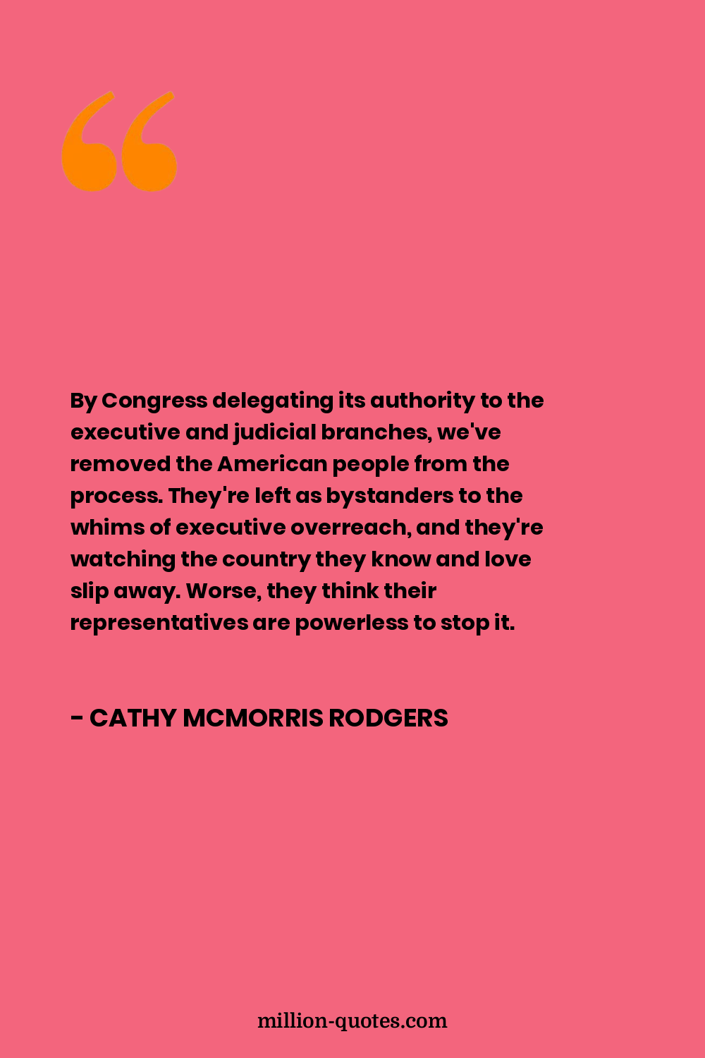 By Congress delegating its authority to the executive and judicial branches, we've removed the American people from the process. They're left as bystanders to the whims of executive overreach, and they're watching the country they know and love slip away. Worse, they think their representatives are powerless to stop it.