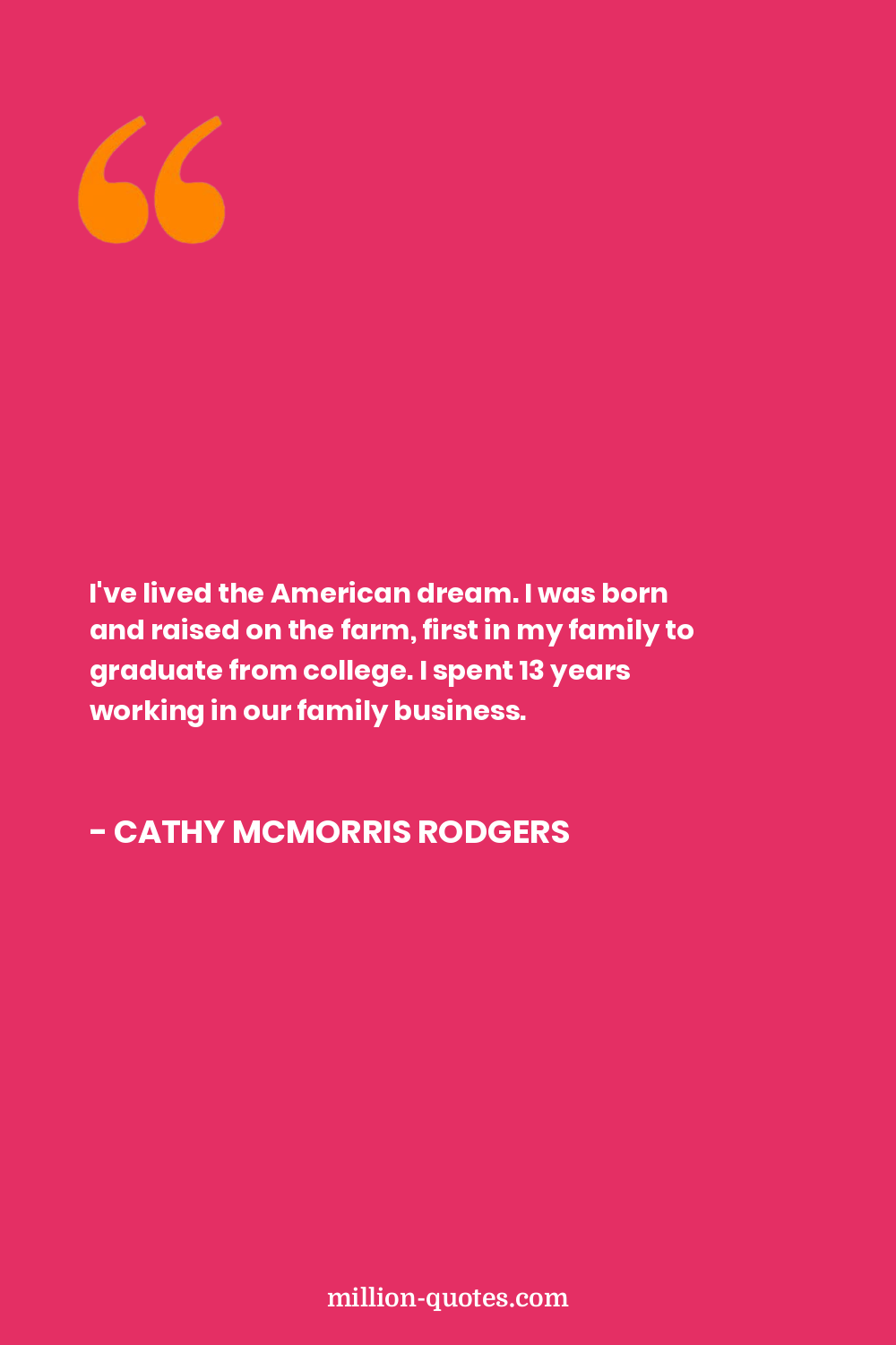 I've lived the American dream. I was born and raised on the farm, first in my family to graduate from college. I spent 13 years working in our family business.