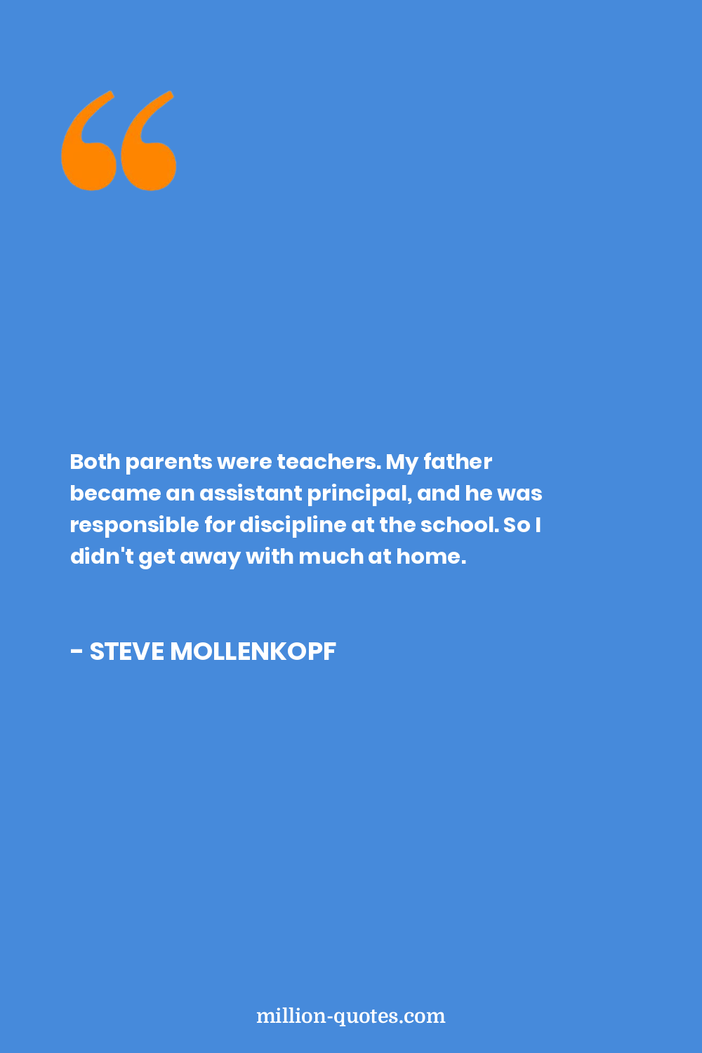 Both parents were teachers. My father became an assistant principal, and he was responsible for discipline at the school. So I didn't get away with much at home.