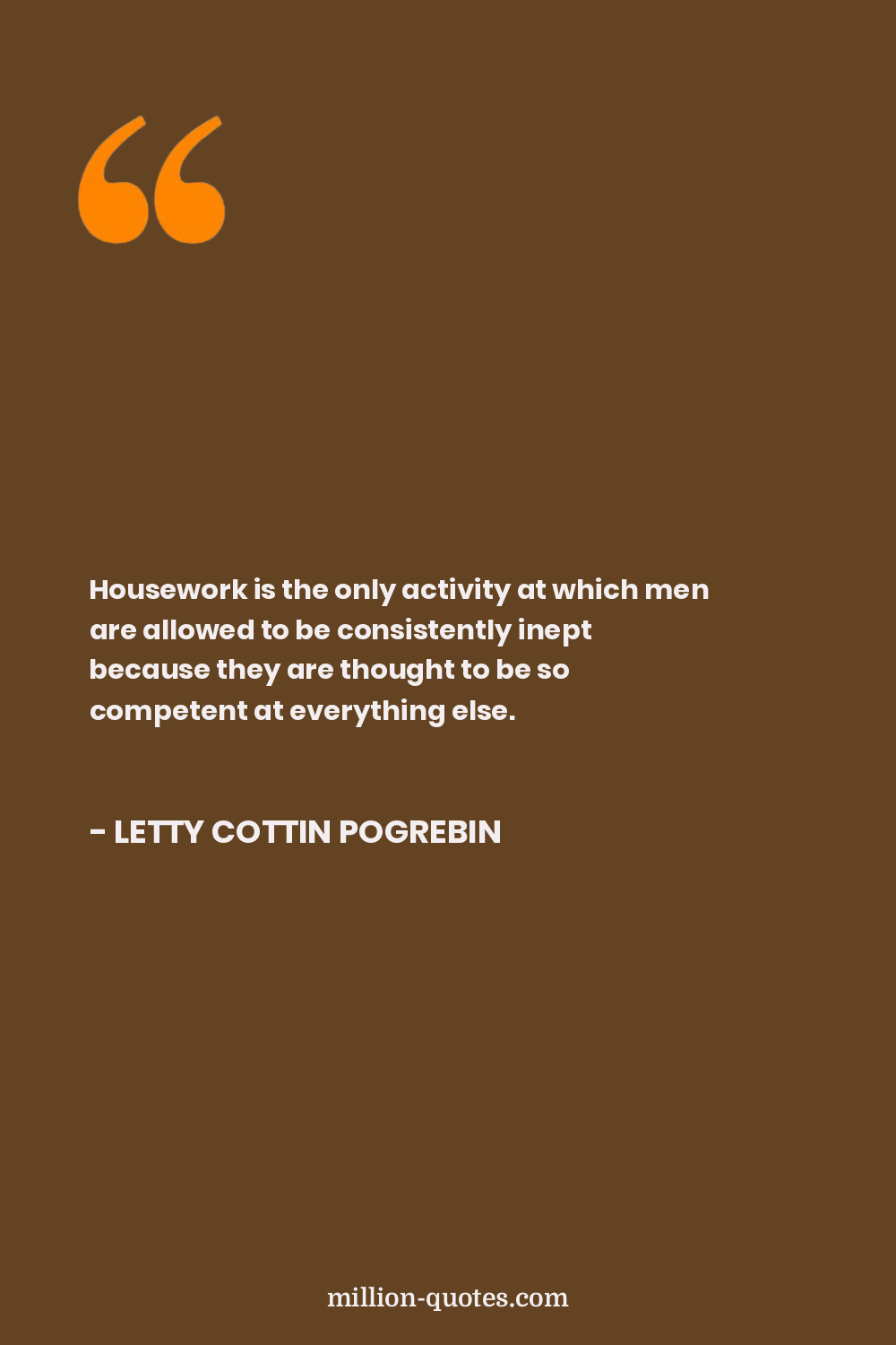 Housework is the only activity at which men are allowed to be consistently inept because they are thought to be so competent at everything else.
