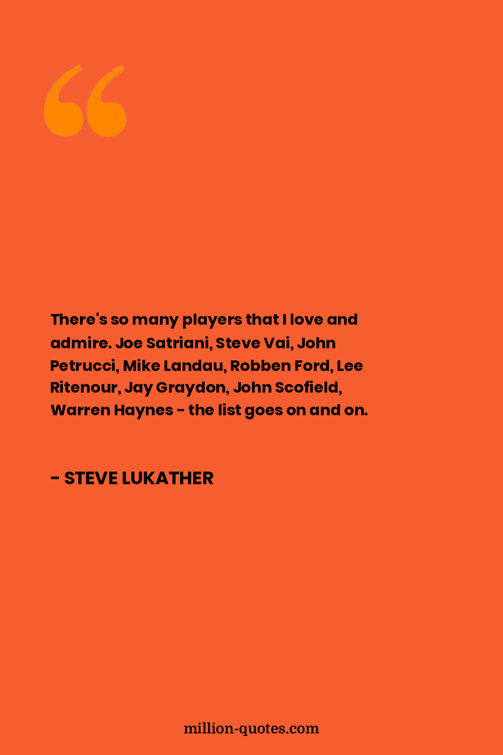 There's so many players that I love and admire. Joe Satriani, Steve Vai, John Petrucci, Mike Landau, Robben Ford, Lee Ritenour, Jay Graydon, John Scofield, Warren Haynes - the list goes on and on.
