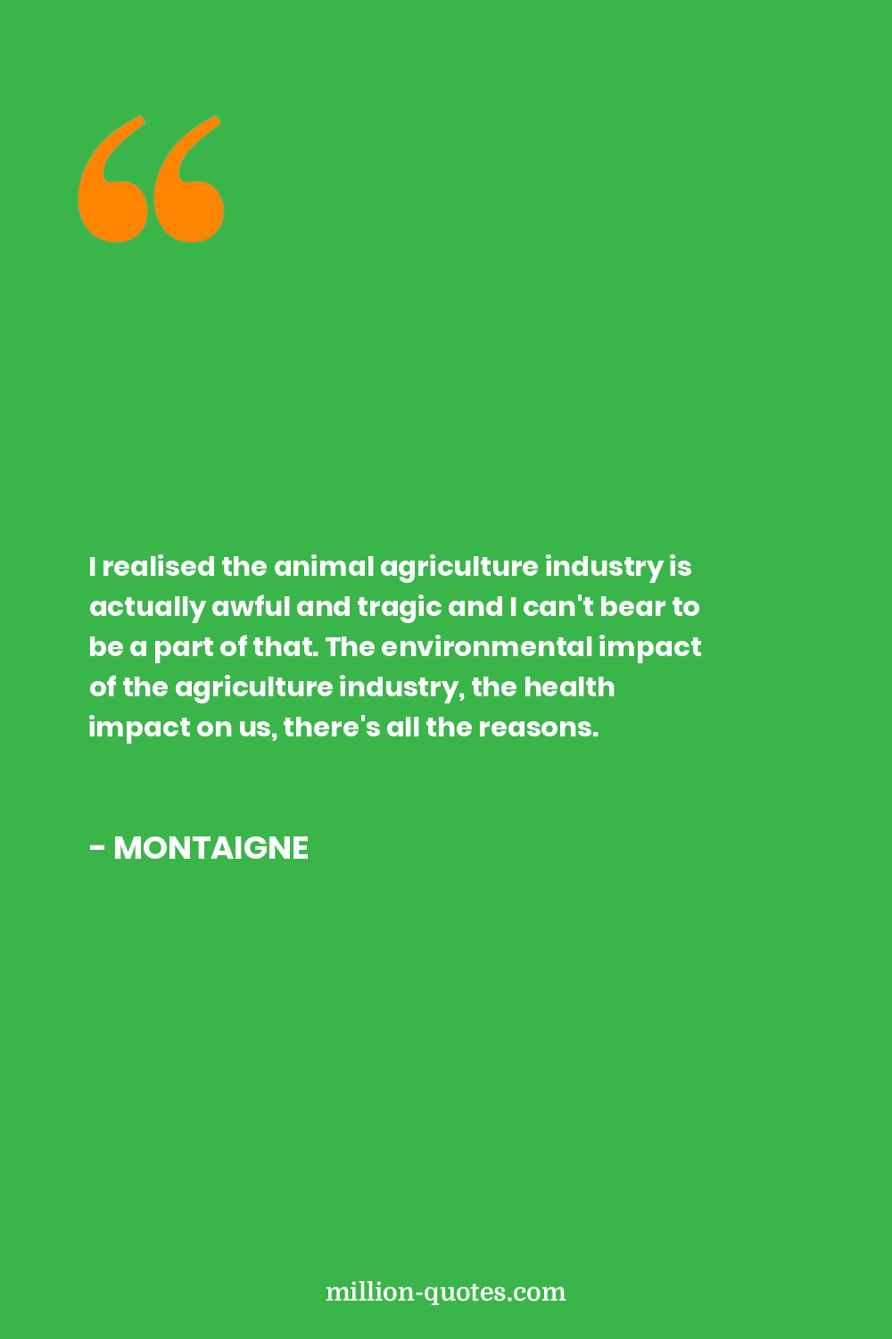 I realised the animal agriculture industry is actually awful and tragic and I can't bear to be a part of that. The environmental impact of the agriculture industry, the health impact on us, there's all the reasons.