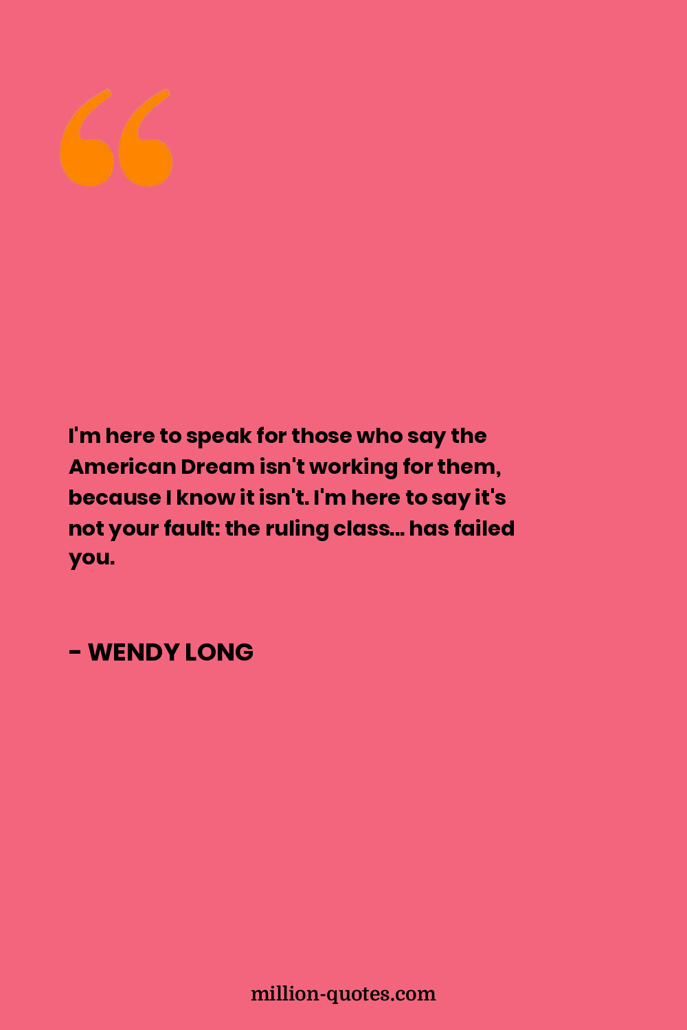 I'm here to speak for those who say the American Dream isn't working for them, because I know it isn't. I'm here to say it's not your fault: the ruling class... has failed you.