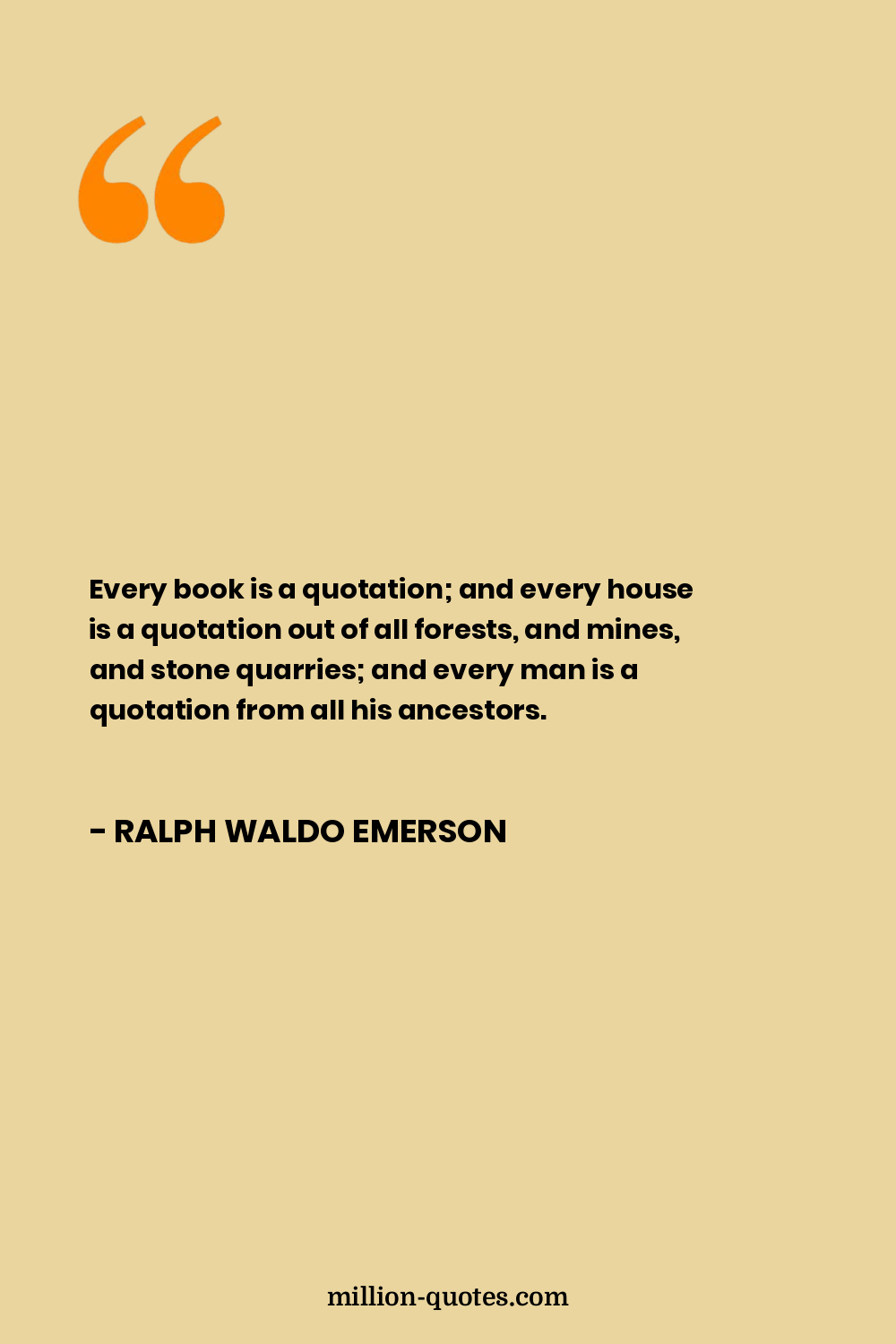 Every book is a quotation; and every house is a quotation out of all forests, and mines, and stone quarries; and every man is a quotation from all his ancestors.
