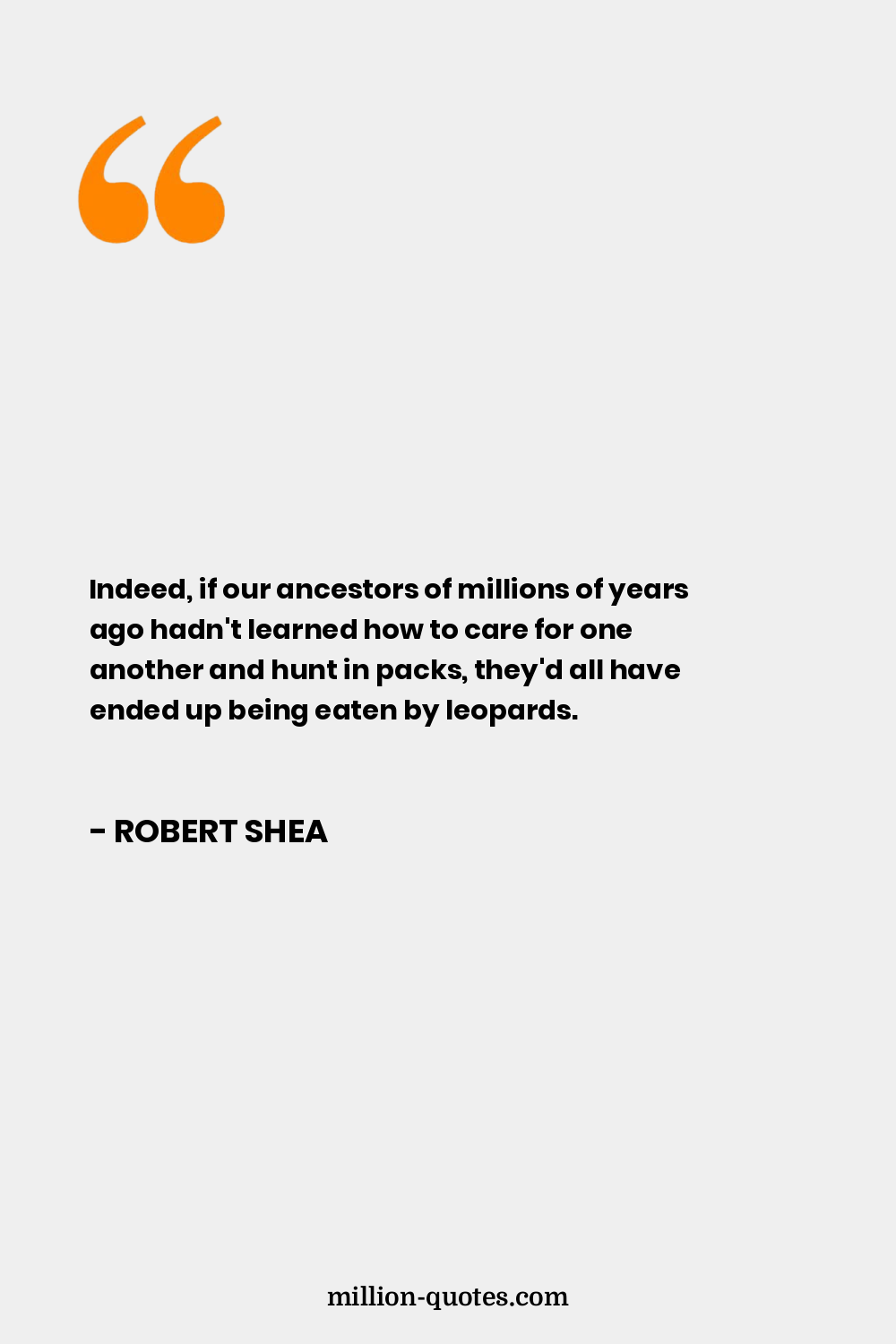 Indeed, if our ancestors of millions of years ago hadn't learned how to care for one another and hunt in packs, they'd all have ended up being eaten by leopards.