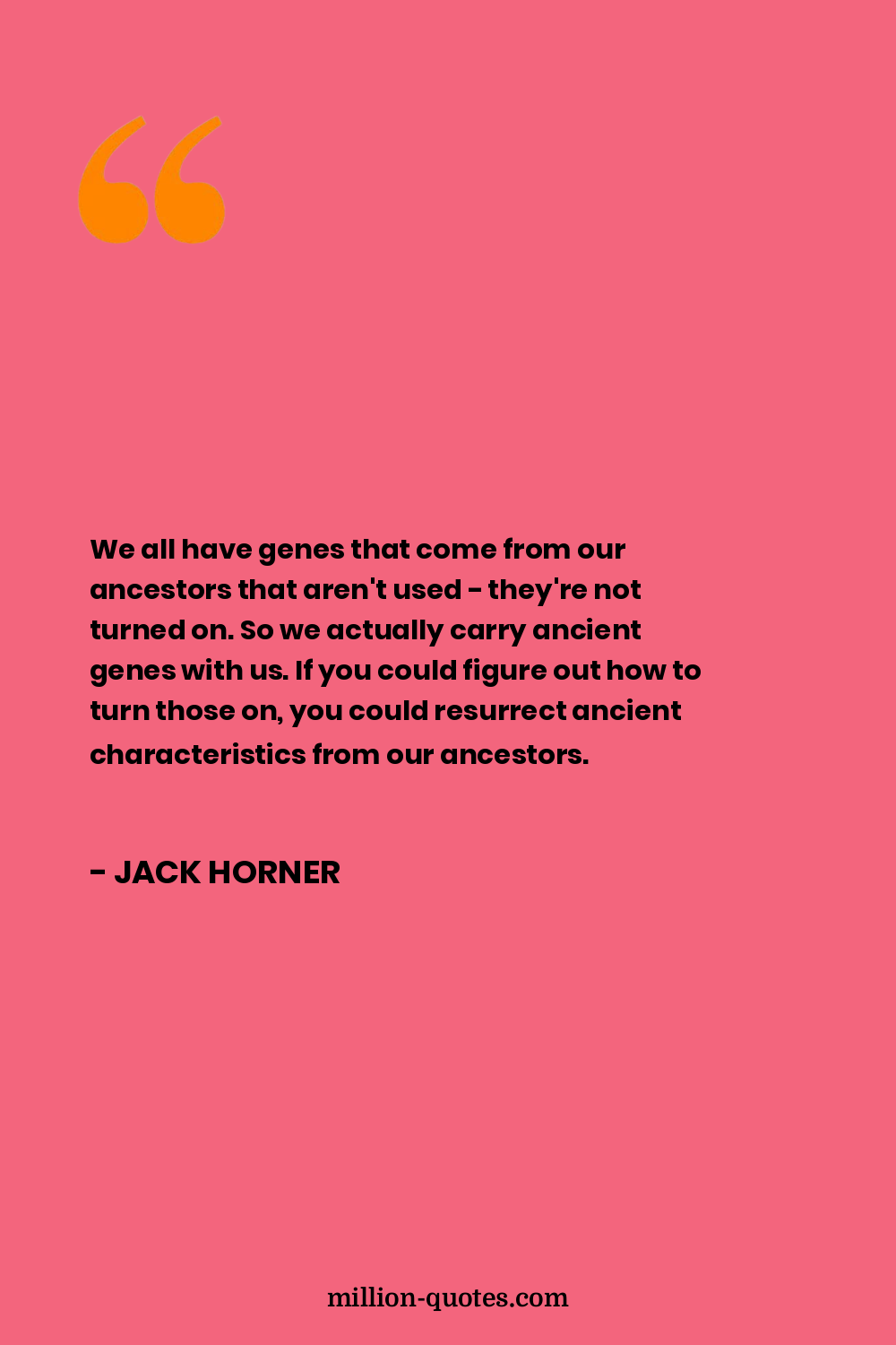 We all have genes that come from our ancestors that aren't used - they're not turned on. So we actually carry ancient genes with us. If you could figure out how to turn those on, you could resurrect ancient characteristics from our ancestors.