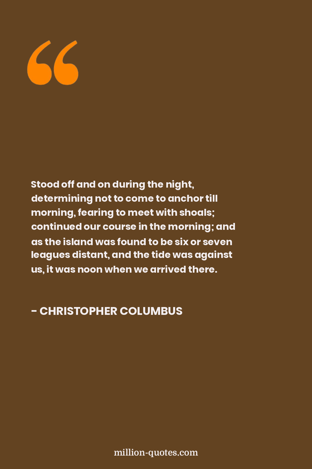 Stood off and on during the night, determining not to come to anchor till morning, fearing to meet with shoals; continued our course in the morning; and as the island was found to be six or seven leagues distant, and the tide was against us, it was noon when we arrived there.