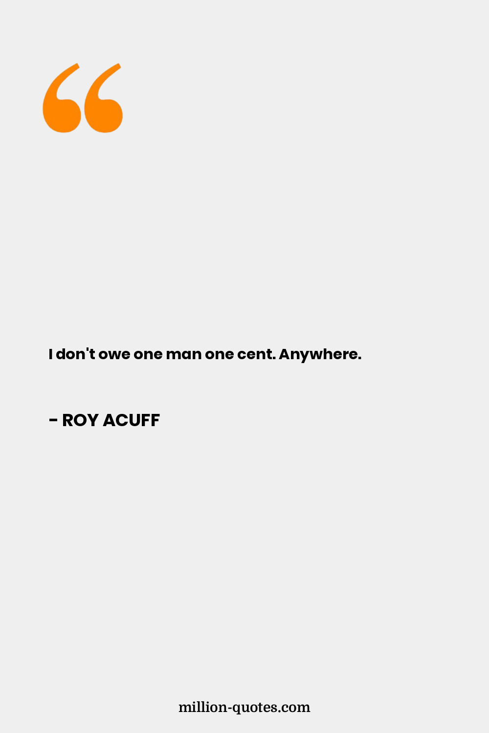 I don't owe one man one cent. Anywhere.