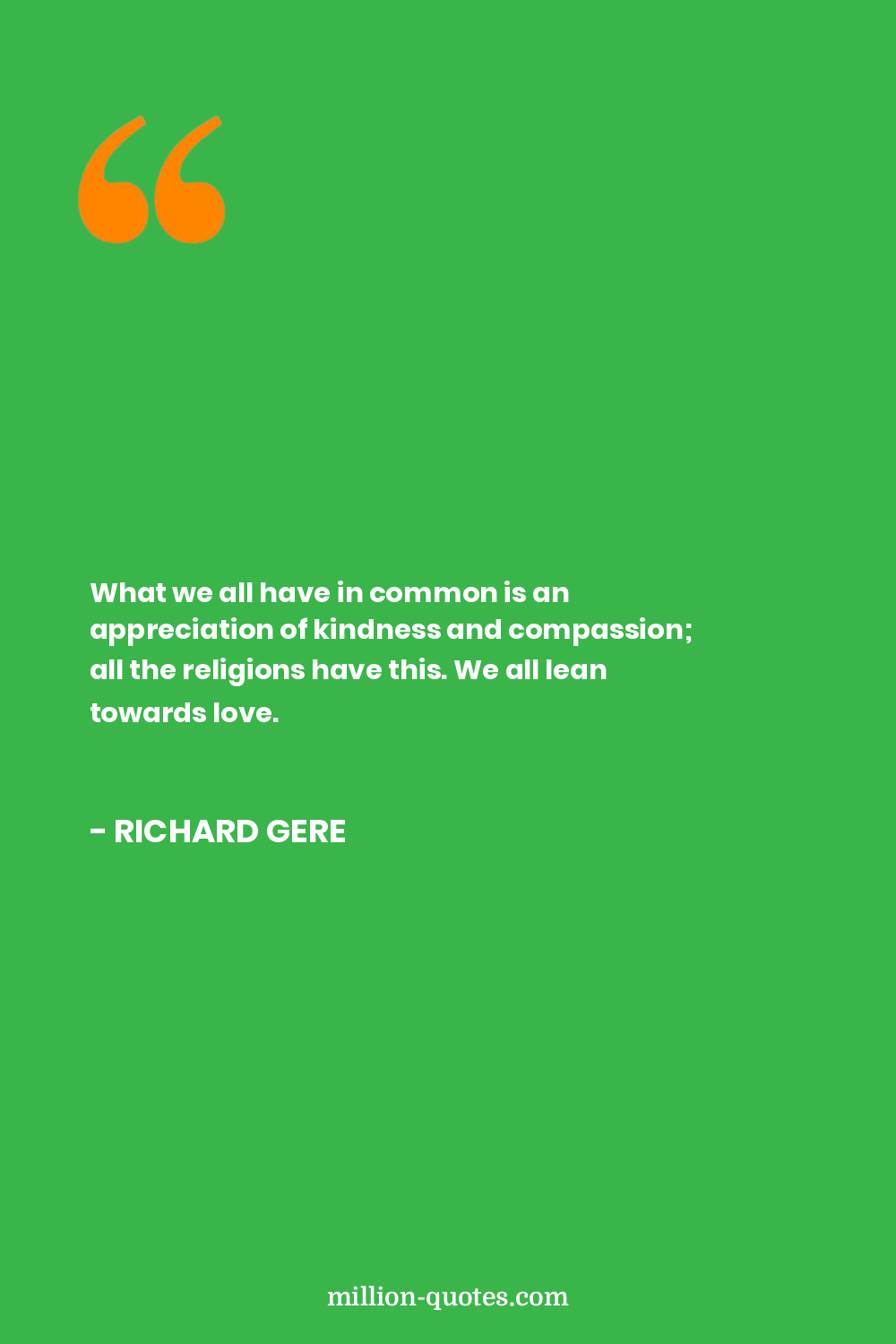 What we all have in common is an appreciation of kindness and compassion; all the religions have this. We all lean towards love.