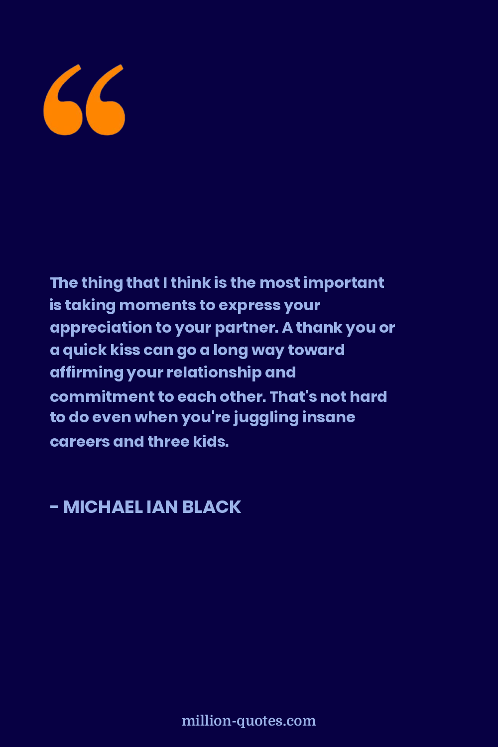 The thing that I think is the most important is taking moments to express your appreciation to your partner. A thank you or a quick kiss can go a long way toward affirming your relationship and commitment to each other. That's not hard to do even when you're juggling insane careers and three kids.