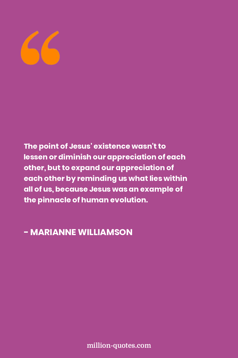 The point of Jesus' existence wasn't to lessen or diminish our appreciation of each other, but to expand our appreciation of each other by reminding us what lies within all of us, because Jesus was an example of the pinnacle of human evolution.