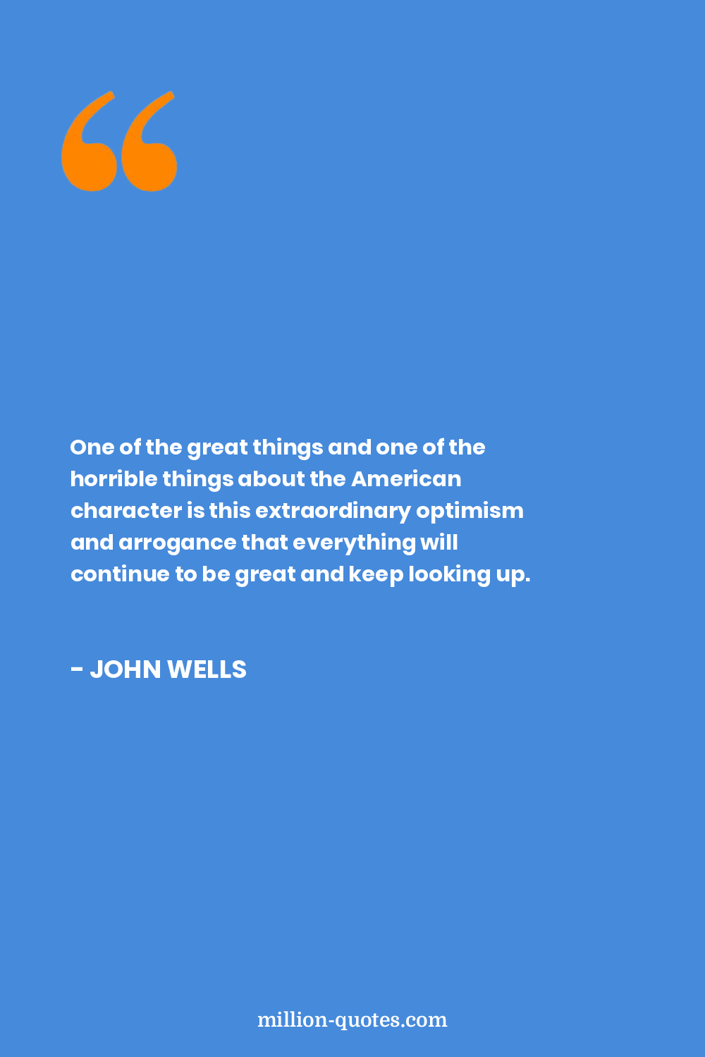One of the great things and one of the horrible things about the American character is this extraordinary optimism and arrogance that everything will continue to be great and keep looking up.