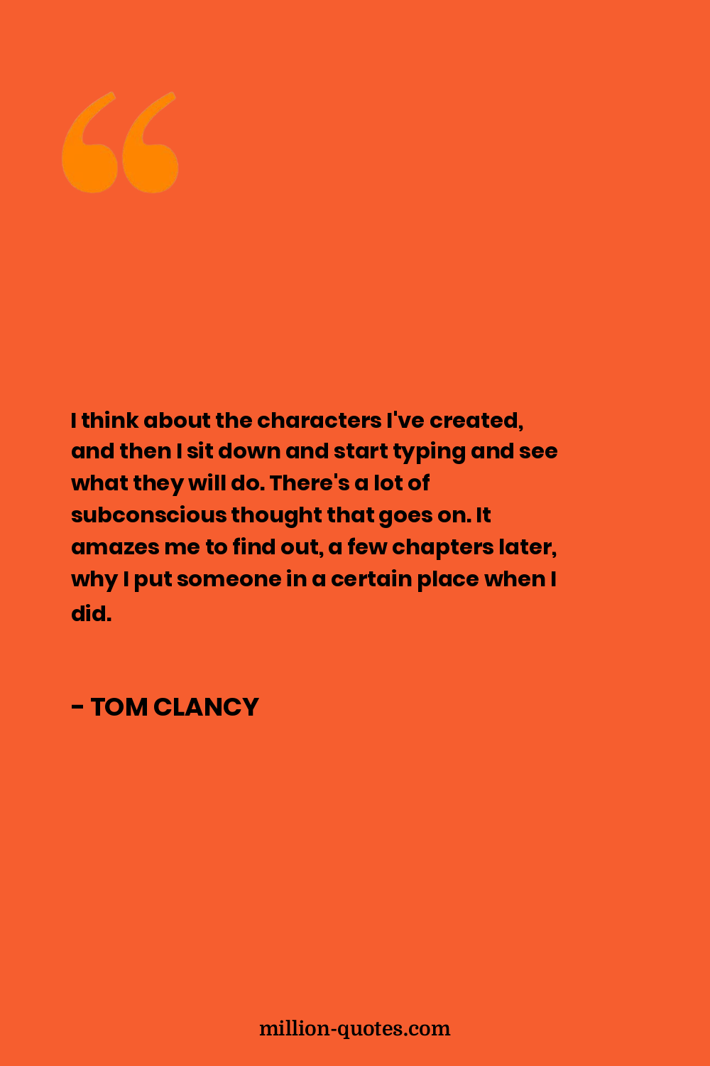 I think about the characters I've created, and then I sit down and start typing and see what they will do. There's a lot of subconscious thought that goes on. It amazes me to find out, a few chapters later, why I put someone in a certain place when I did.