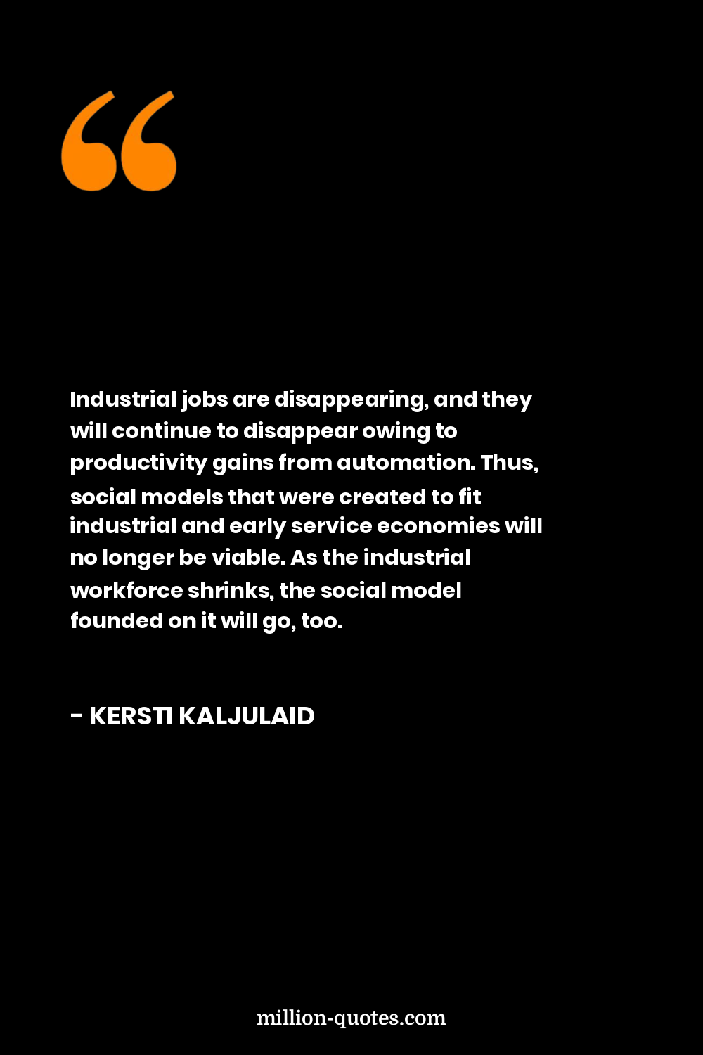 Industrial jobs are disappearing, and they will continue to disappear owing to productivity gains from automation. Thus, social models that were created to fit industrial and early service economies will no longer be viable. As the industrial workforce shrinks, the social model founded on it will go, too.
