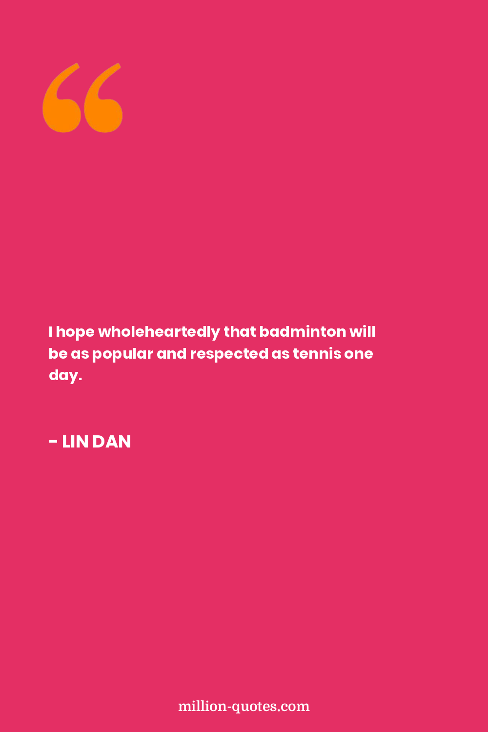 In countries like China and Indonesia, badminton is like a religion. Players get mobbed in the street. In China, it is a national sport, and Lin Dan, their star player, is treated like David Beckham.