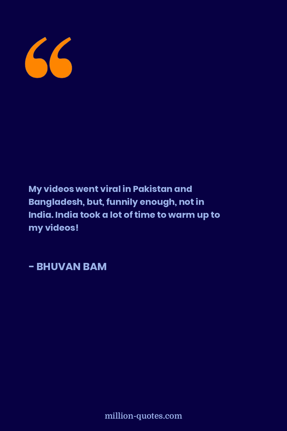 My videos went viral in Pakistan and Bangladesh, but, funnily enough, not in India. India took a lot of time to warm up to my videos!