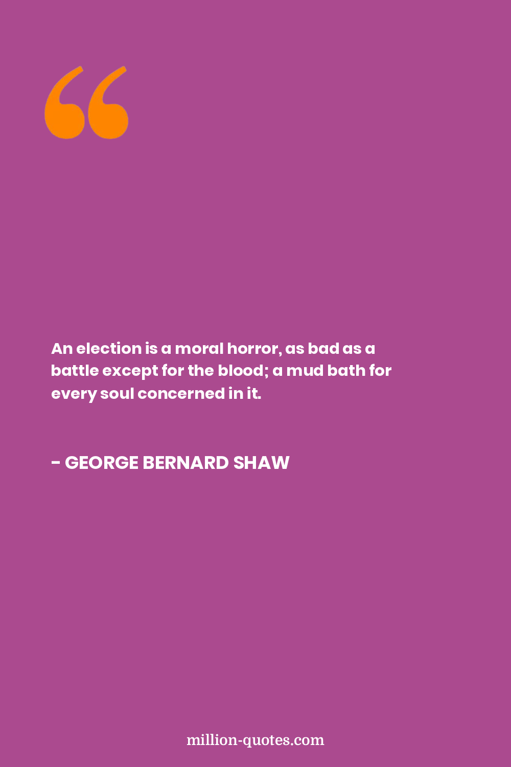 An election is a moral horror, as bad as a battle except for the blood; a mud bath for every soul concerned in it.