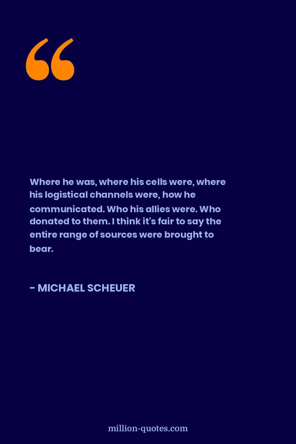 Where he was, where his cells were, where his logistical channels were, how he communicated. Who his allies were. Who donated to them. I think it's fair to say the entire range of sources were brought to bear.