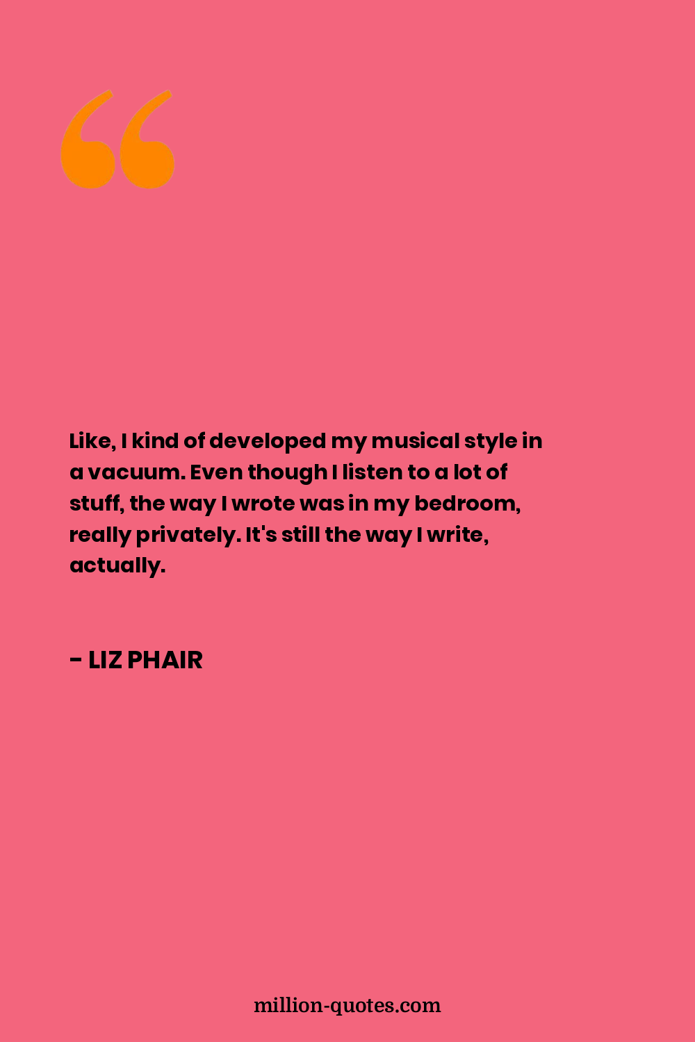 Like, I kind of developed my musical style in a vacuum. Even though I listen to a lot of stuff, the way I wrote was in my bedroom, really privately. It's still the way I write, actually.