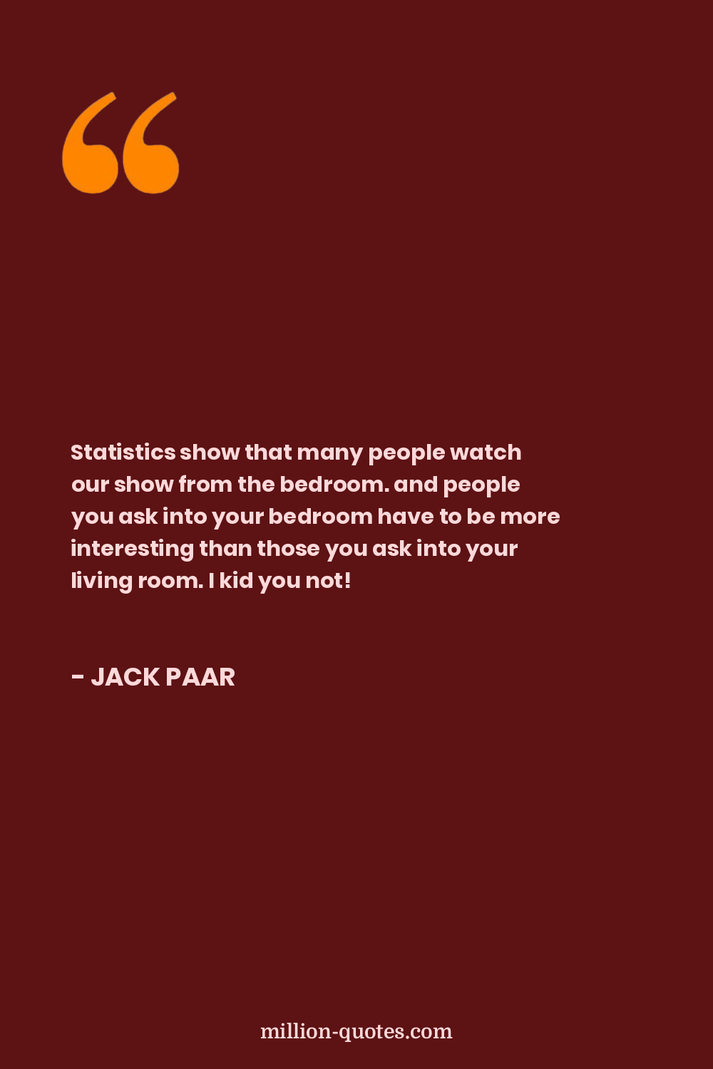 Statistics show that many people watch our show from the bedroom. and people you ask into your bedroom have to be more interesting than those you ask into your living room. I kid you not!