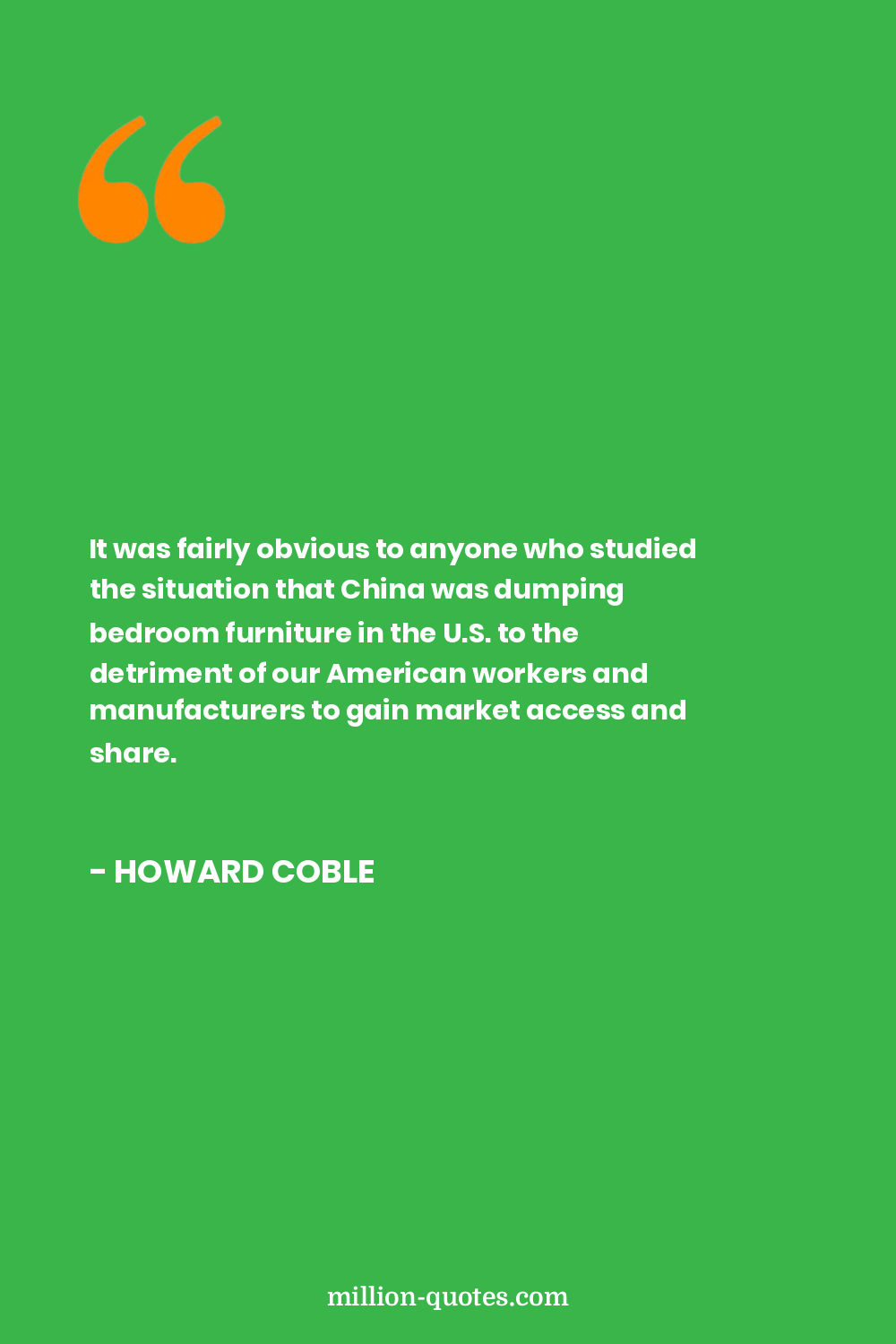 It was fairly obvious to anyone who studied the situation that China was dumping bedroom furniture in the U.S. to the detriment of our American workers and manufacturers to gain market access and share.