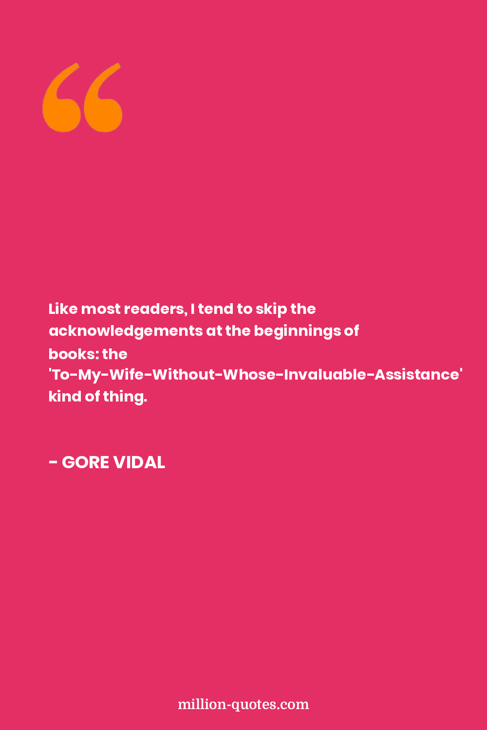 Like most readers, I tend to skip the acknowledgements at the beginnings of books: the 'To-My-Wife-Without-Whose-Invaluable-Assistance' kind of thing.