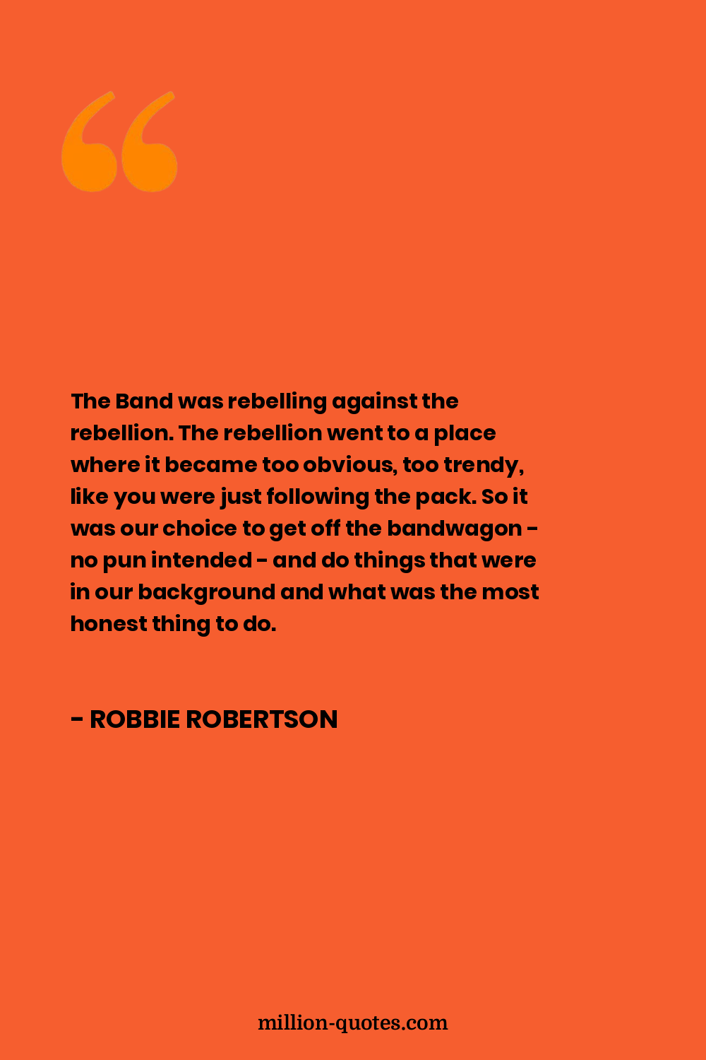 The Band was rebelling against the rebellion. The rebellion went to a place where it became too obvious, too trendy, like you were just following the pack. So it was our choice to get off the bandwagon - no pun intended - and do things that were in our background and what was the most honest thing to do.