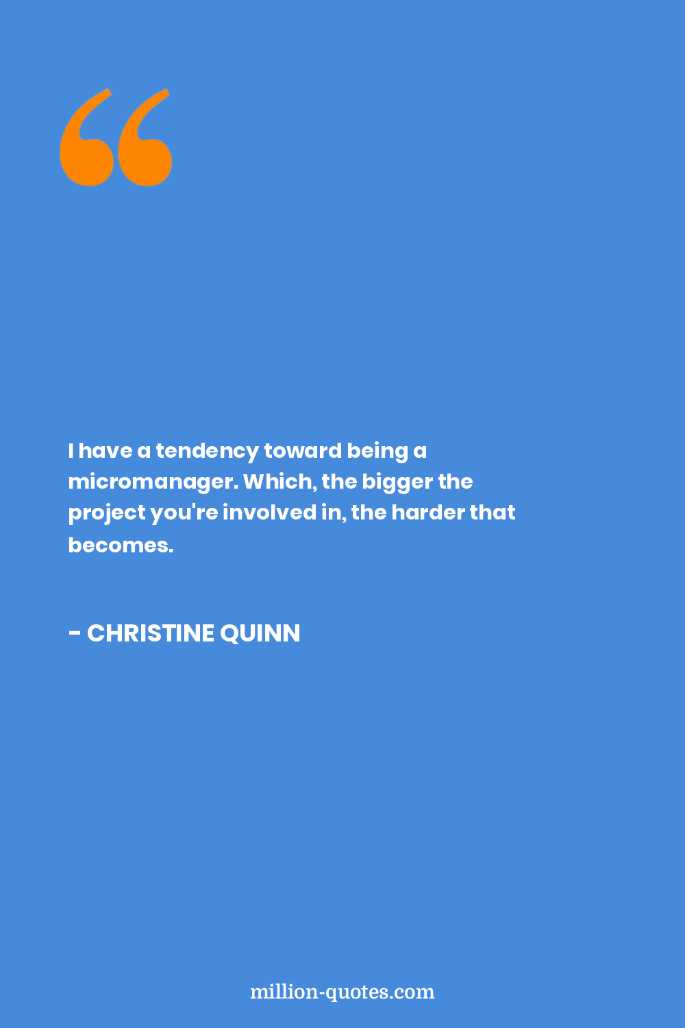 I have a tendency toward being a micromanager. Which, the bigger the project you're involved in, the harder that becomes.
