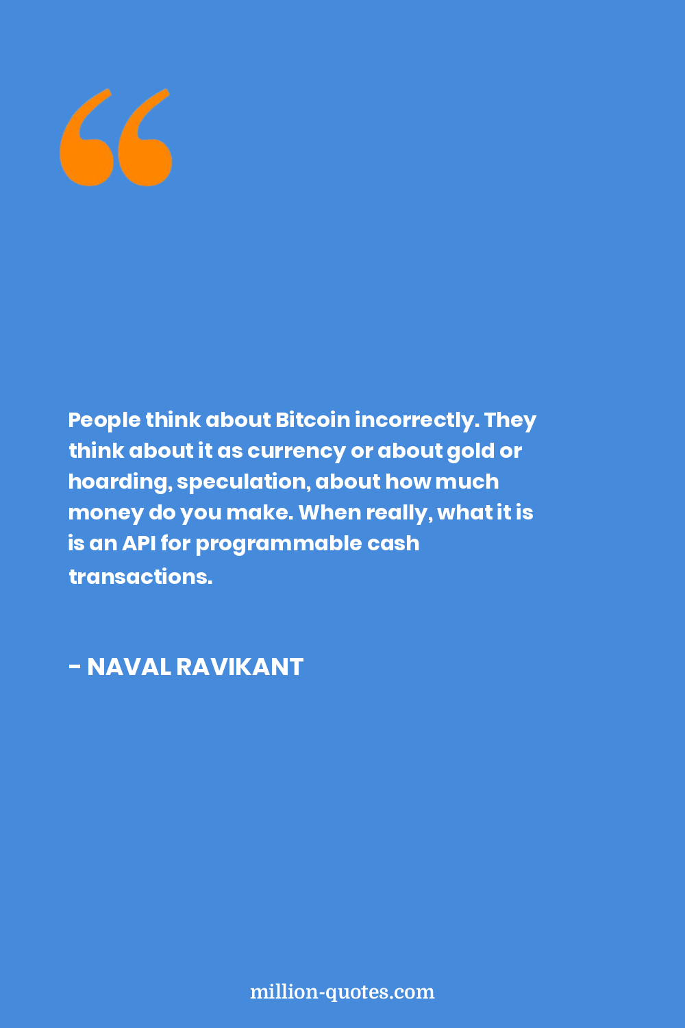People think about Bitcoin incorrectly. They think about it as currency or about gold or hoarding, speculation, about how much money do you make. When really, what it is is an API for programmable cash transactions.