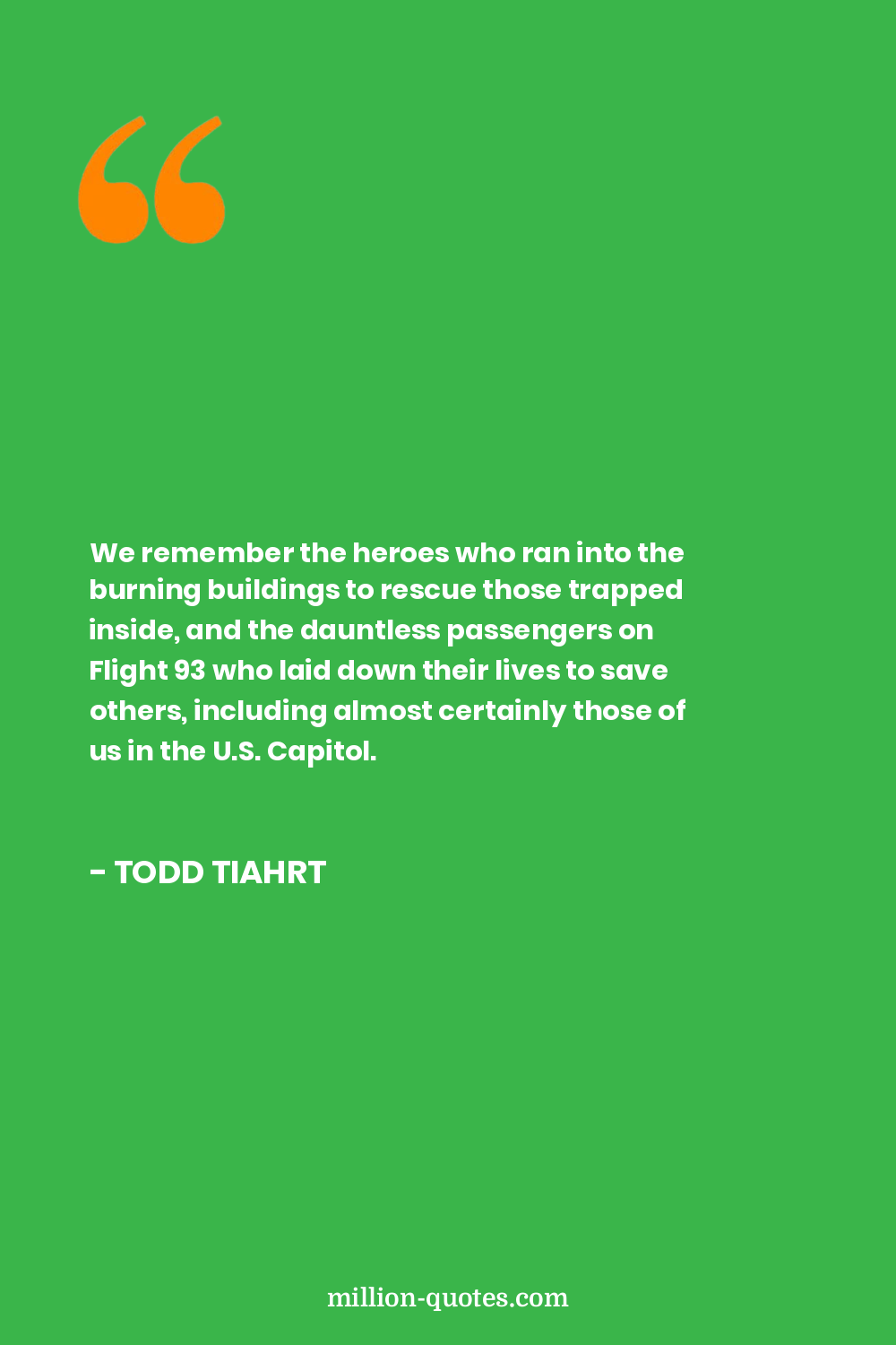 We remember the heroes who ran into the burning buildings to rescue those trapped inside, and the dauntless passengers on Flight 93 who laid down their lives to save others, including almost certainly those of us in the U.S. Capitol.