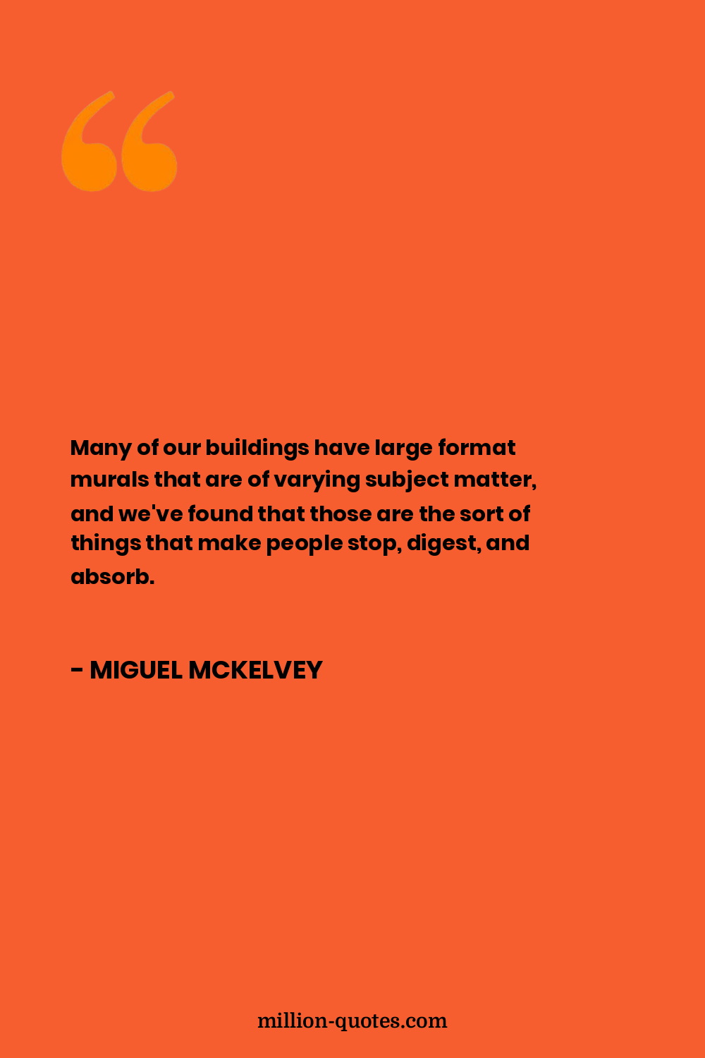 Many of our buildings have large format murals that are of varying subject matter, and we've found that those are the sort of things that make people stop, digest, and absorb.