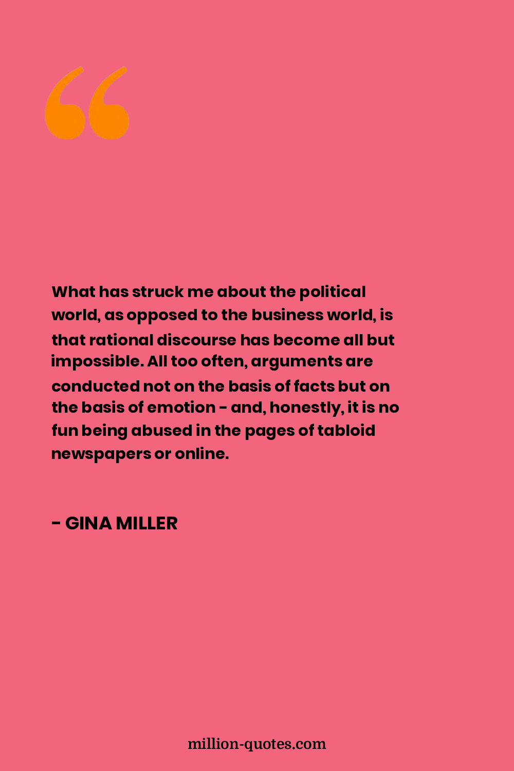 What has struck me about the political world, as opposed to the business world, is that rational discourse has become all but impossible. All too often, arguments are conducted not on the basis of facts but on the basis of emotion - and, honestly, it is no fun being abused in the pages of tabloid newspapers or online.