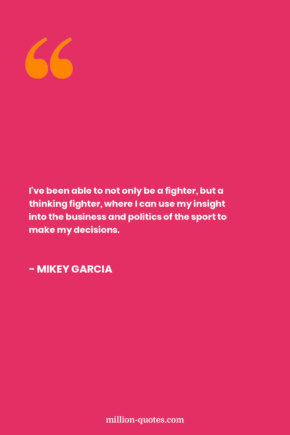 I've been able to not only be a fighter, but a thinking fighter, where I can use my insight into the business and politics of the sport to make my decisions.
