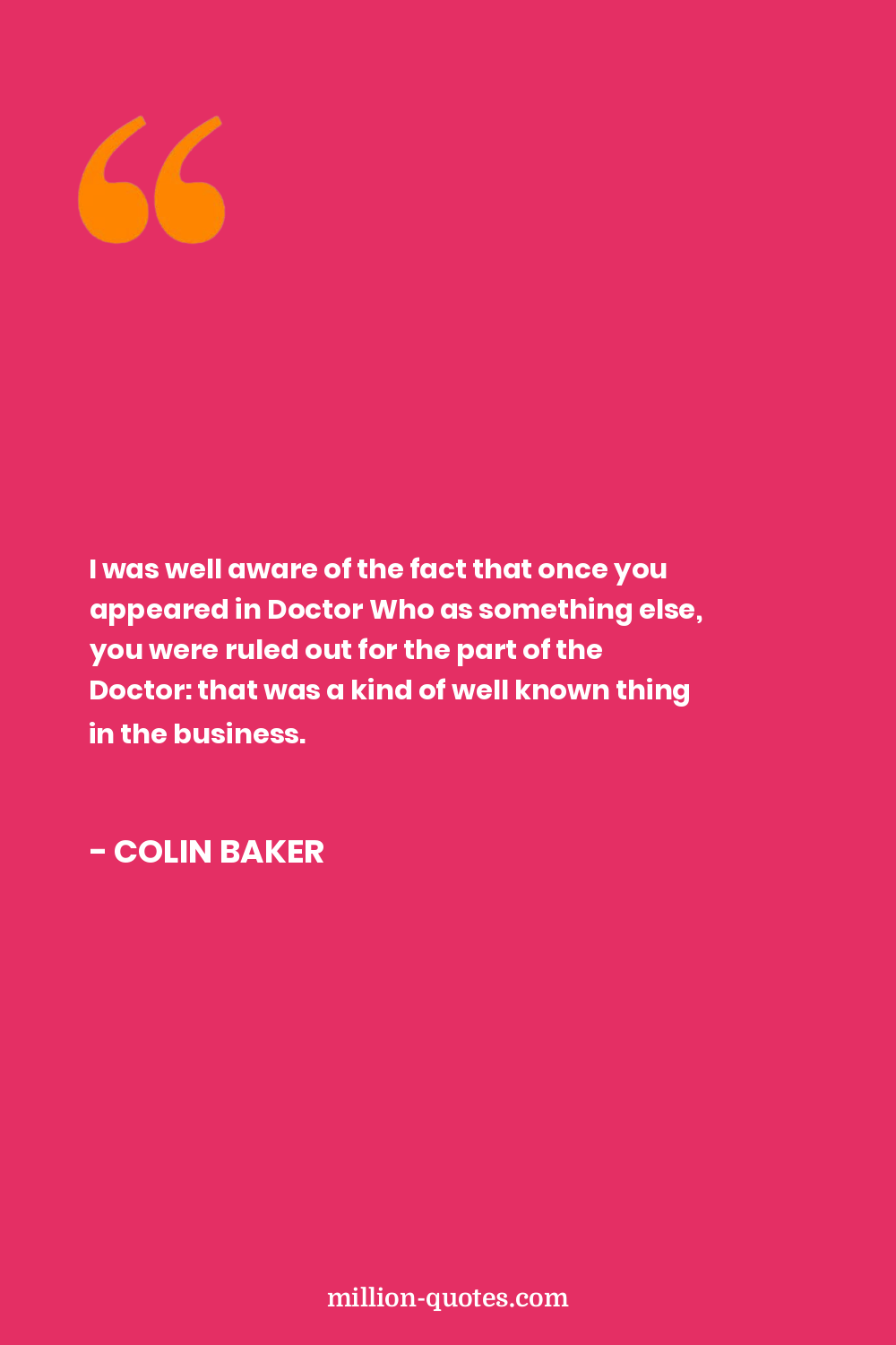 I was well aware of the fact that once you appeared in Doctor Who as something else, you were ruled out for the part of the Doctor: that was a kind of well known thing in the business.