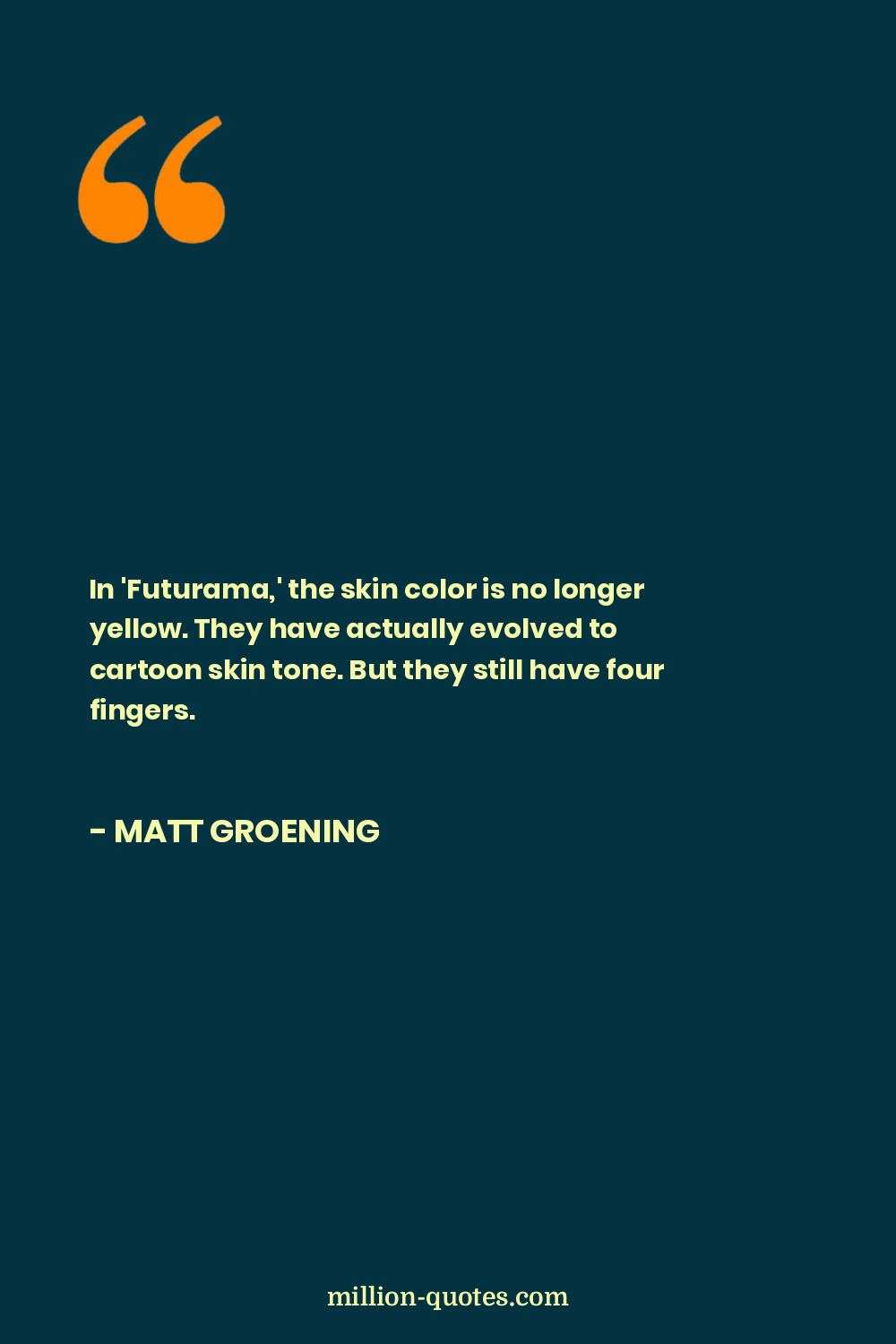 In 'Futurama,' the skin color is no longer yellow. They have actually evolved to cartoon skin tone. But they still have four fingers.