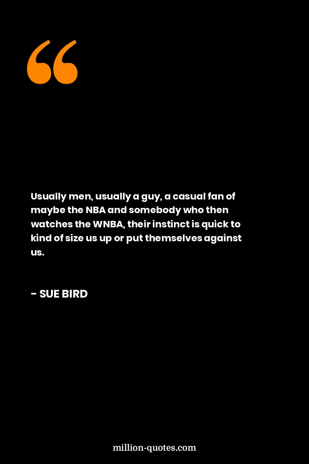Usually men, usually a guy, a casual fan of maybe the NBA and somebody who then watches the WNBA, their instinct is quick to kind of size us up or put themselves against us.