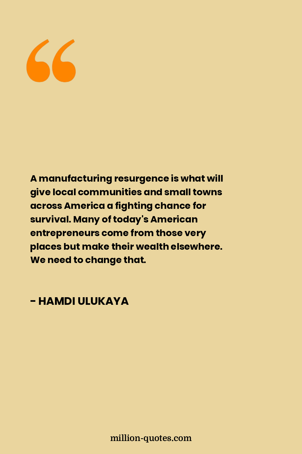 A manufacturing resurgence is what will give local communities and small towns across America a fighting chance for survival. Many of today's American entrepreneurs come from those very places but make their wealth elsewhere. We need to change that.
