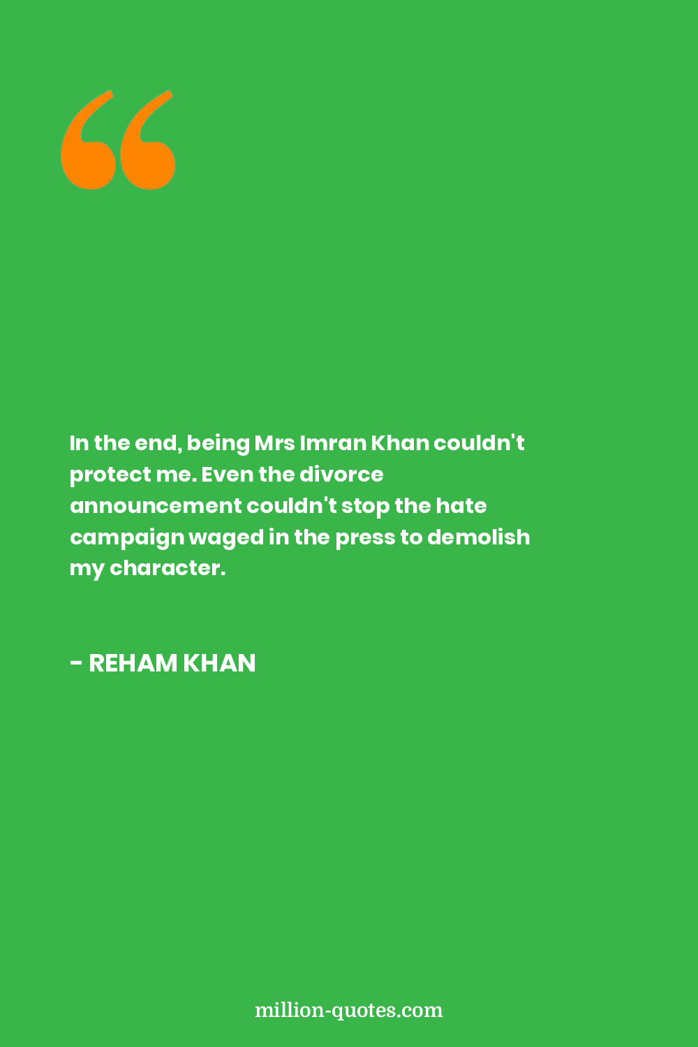 In the end, being Mrs Imran Khan couldn't protect me. Even the divorce announcement couldn't stop the hate campaign waged in the press to demolish my character.
