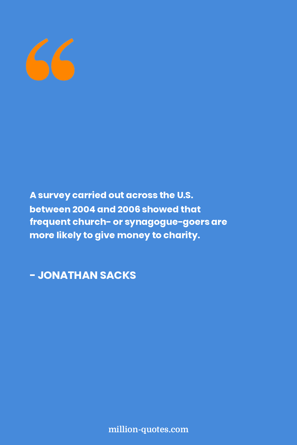 A survey carried out across the U.S. between 2004 and 2006 showed that frequent church- or synagogue-goers are more likely to give money to charity.