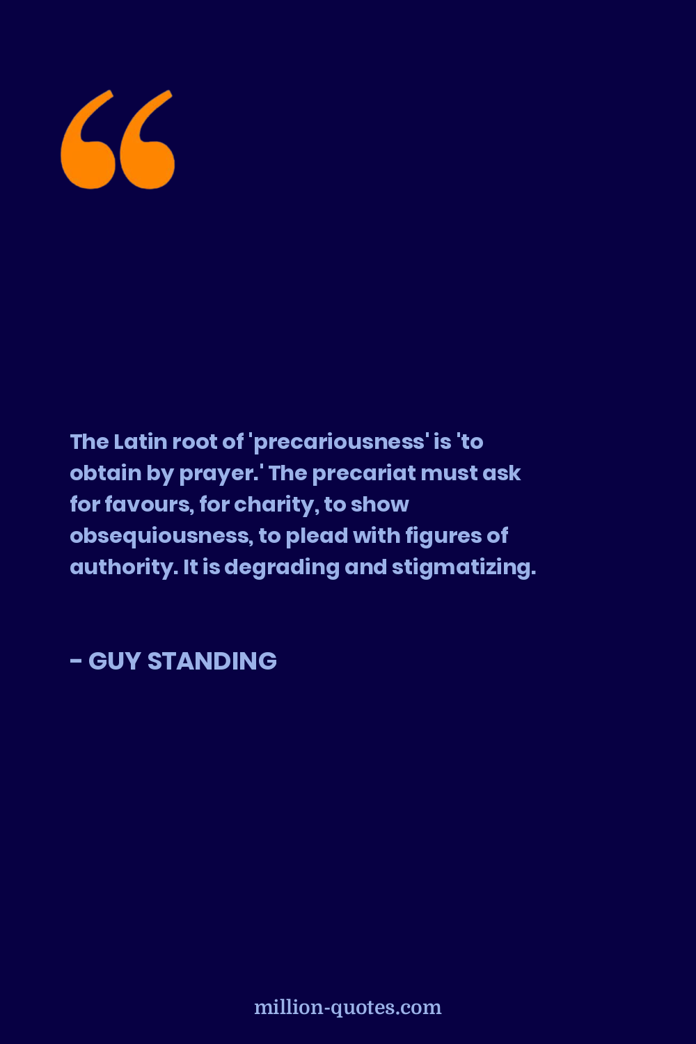 The Latin root of 'precariousness' is 'to obtain by prayer.' The precariat must ask for favours, for charity, to show obsequiousness, to plead with figures of authority. It is degrading and stigmatizing.