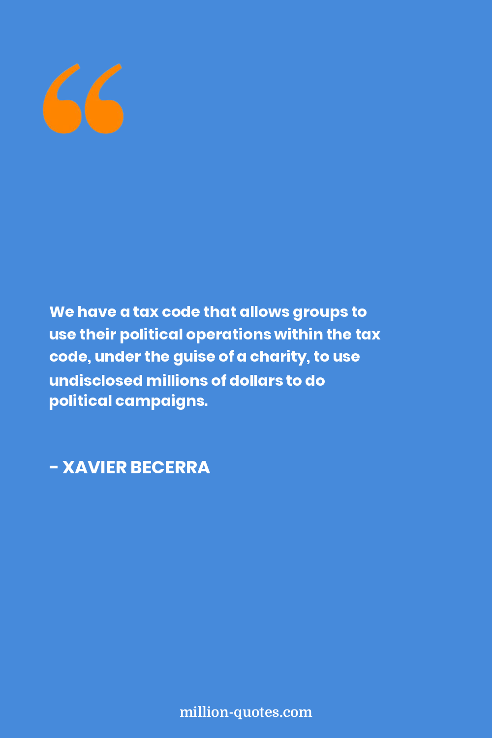 We have a tax code that allows groups to use their political operations within the tax code, under the guise of a charity, to use undisclosed millions of dollars to do political campaigns.