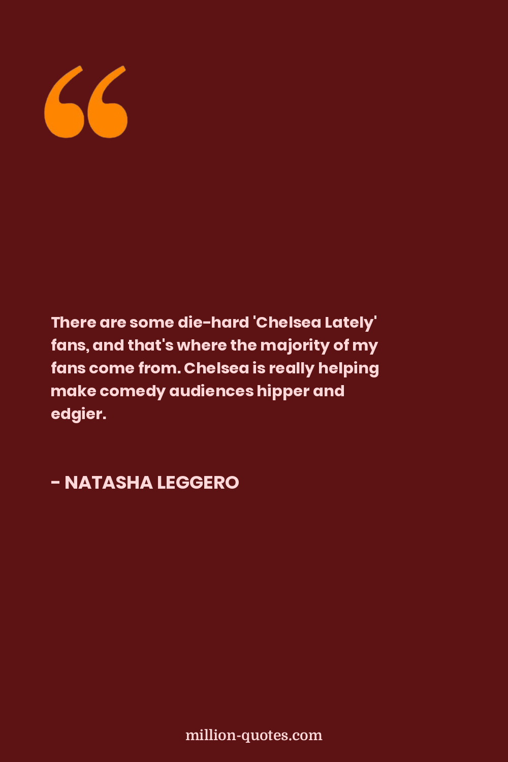 There are some die-hard 'Chelsea Lately' fans, and that's where the majority of my fans come from. Chelsea is really helping make comedy audiences hipper and edgier.