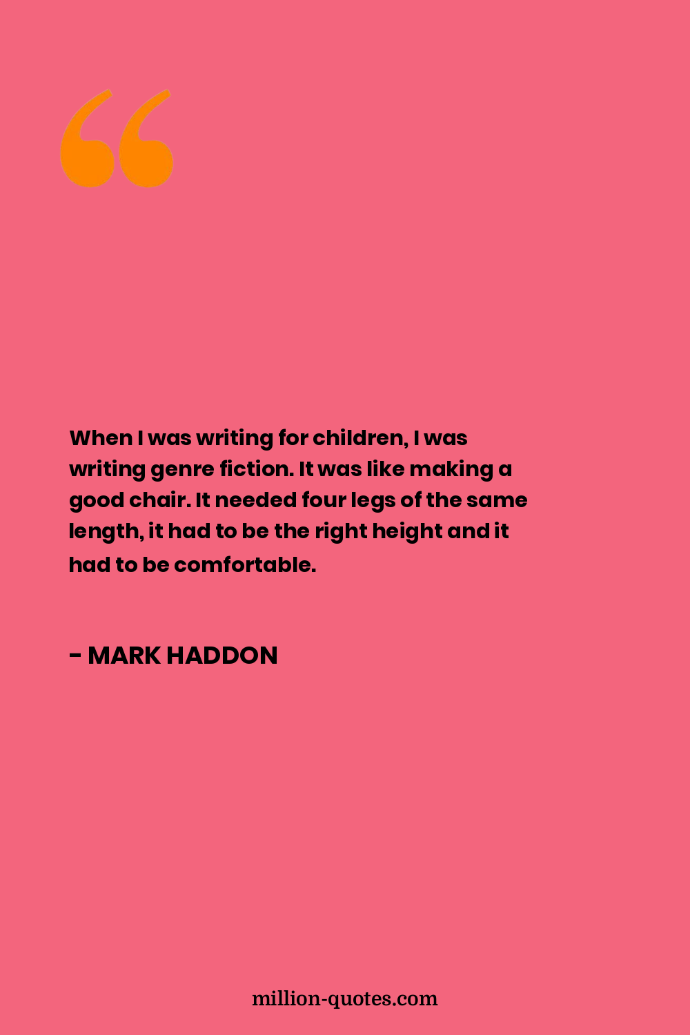 When I was writing for children, I was writing genre fiction. It was like making a good chair. It needed four legs of the same length, it had to be the right height and it had to be comfortable.