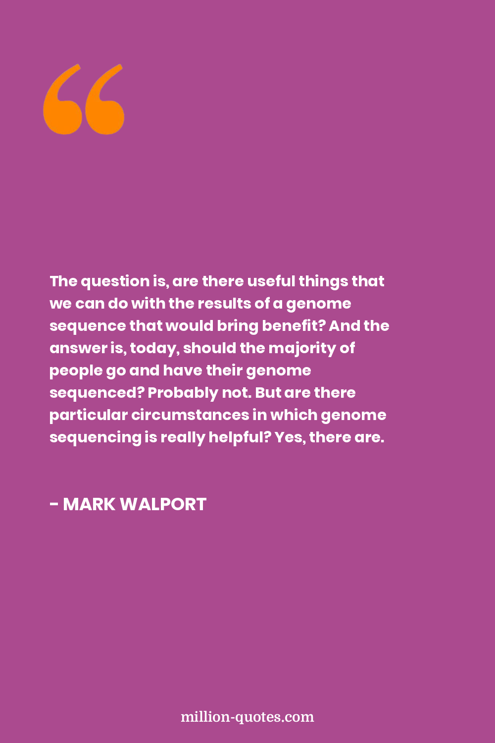The question is, are there useful things that we can do with the results of a genome sequence that would bring benefit? And the answer is, today, should the majority of people go and have their genome sequenced? Probably not. But are there particular circumstances in which genome sequencing is really helpful? Yes, there are.